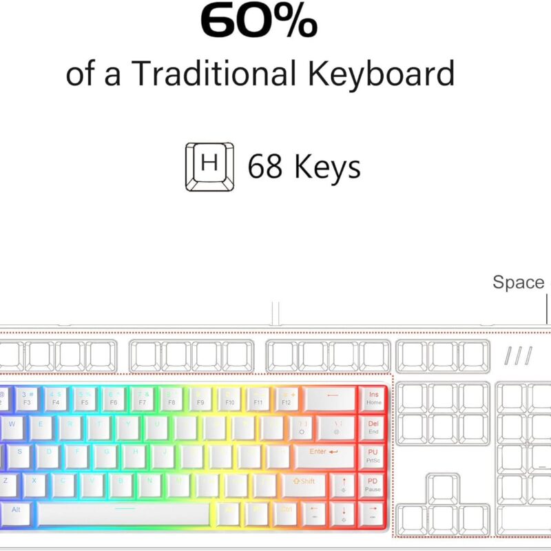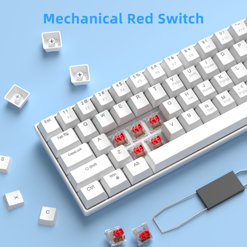 Description :Number of keys: 61 Lighting: RGB Weight:515g±10% Size:290*100*38mm Connecting type: wired Interface: USB Cable Length: approx.1.5m1. 60% Mechanical Keyboard with 61 keys 2. Ergonomic design with OEM profile 3. ABS double-shot keycaps 4. Support all keys hot swap(3-pin/5-pin pcb-mounted) and N-key rollover 5. Detachable USB A-C cable 6. RGB lighting with different lighting modes…