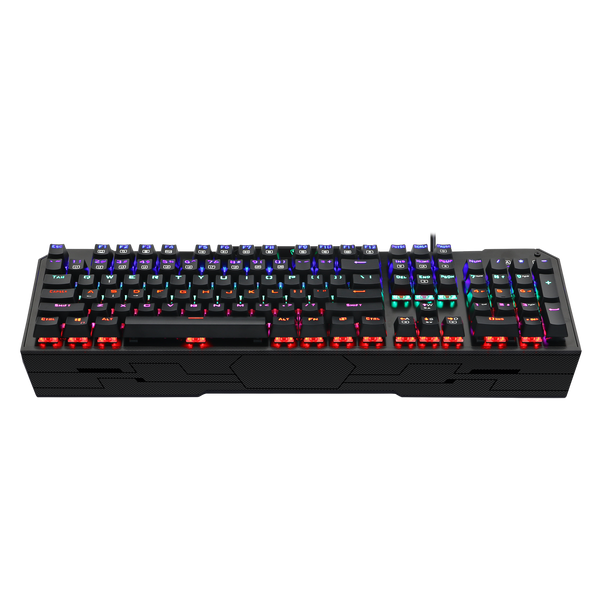 Mechanical keyboard Full keys non-conflict Double shot inject keycaps Win key can be disable in gaming Interchangeable WASD keys and arrow keys Rainbow backlight Feature Details Layout 104 Keys, Full-size Switches OUTEMU Blue Mechanical Lighting Rainbow Backlight Key Features Interchangeable WASD/Arrows, Disable Win key Build Aluminum Panel, Double-Shot Keycaps Warranty 1 Years
