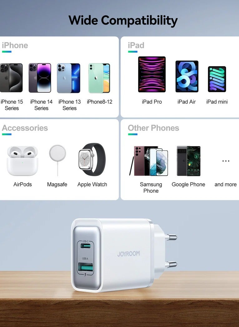 JOYROOM JR-TCF15 30W Dual-Port (A+C) Charger White