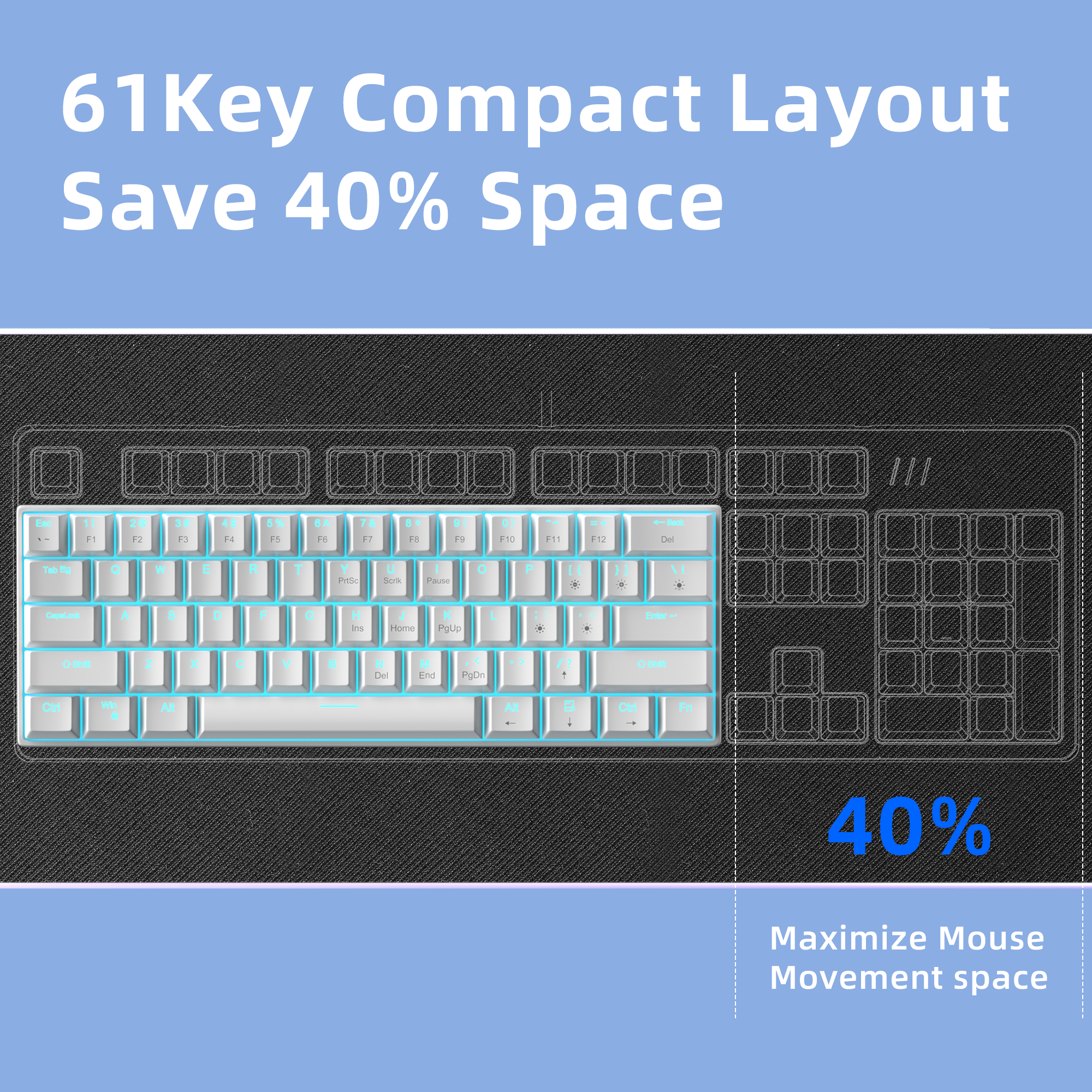 60% Mechanical Keyboard with 61 keys Number of Keys: 61