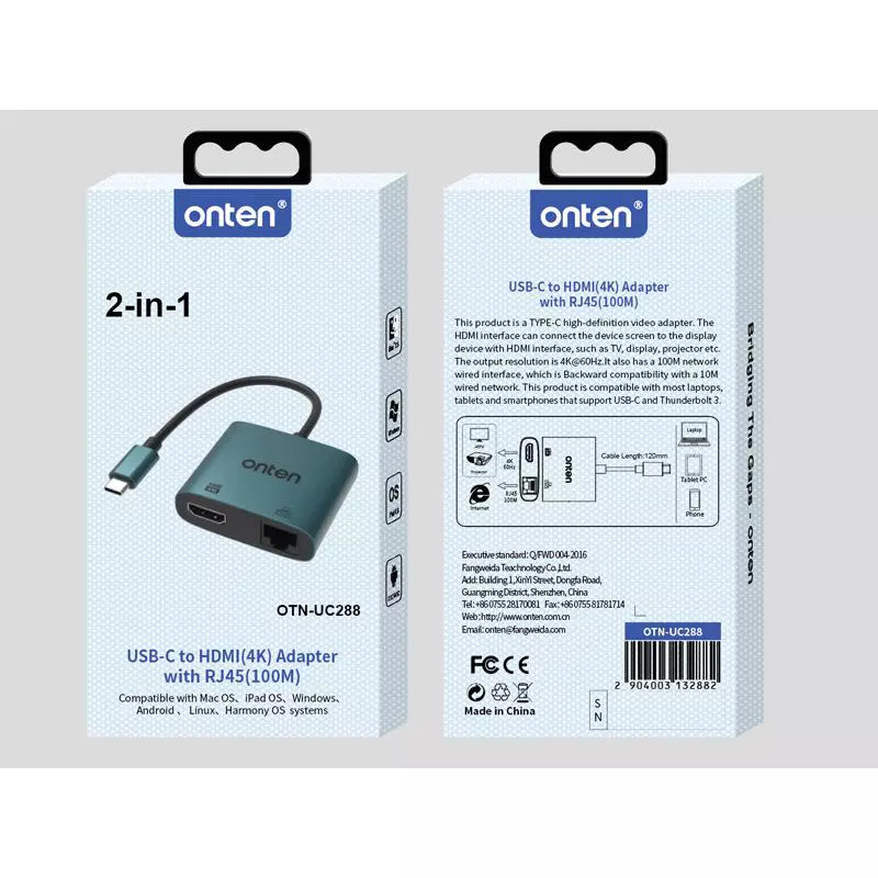 ONTEN UC288 USB-C to HDMI HD Video Adapter with RJ45(100M)