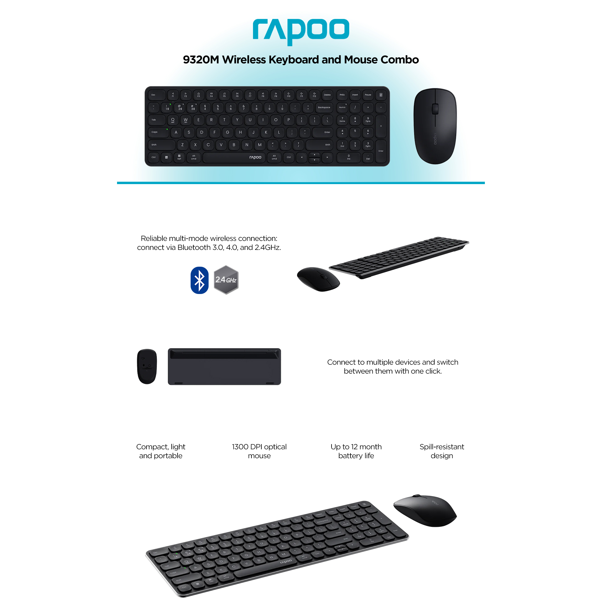 Rapoo 9320M Multi-Mode Wireless Keyboard and Mouse Combo BLACK eng/عربي