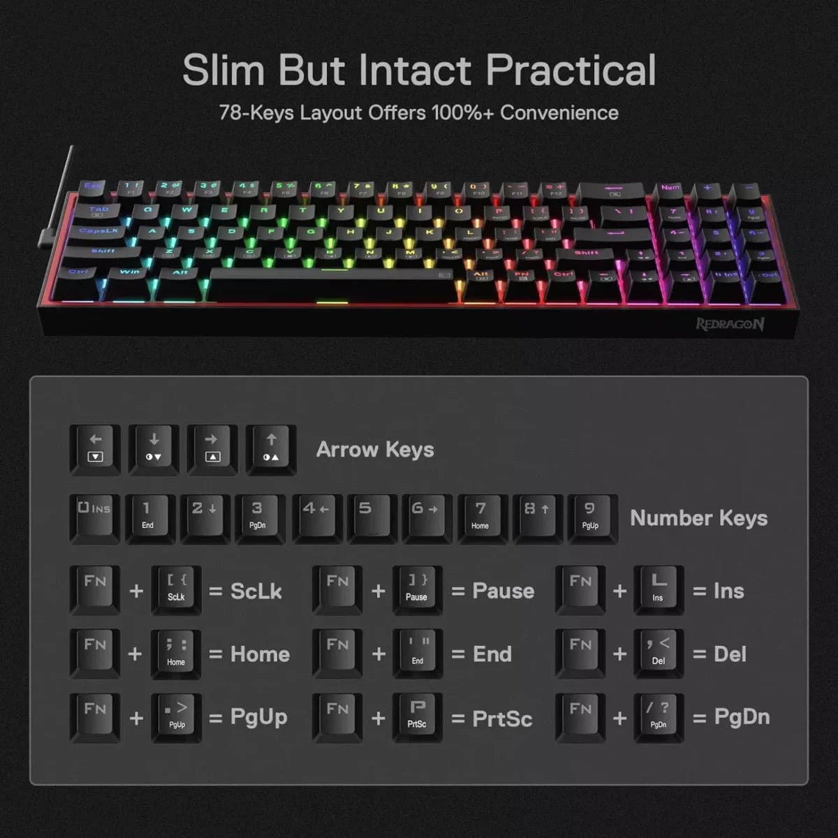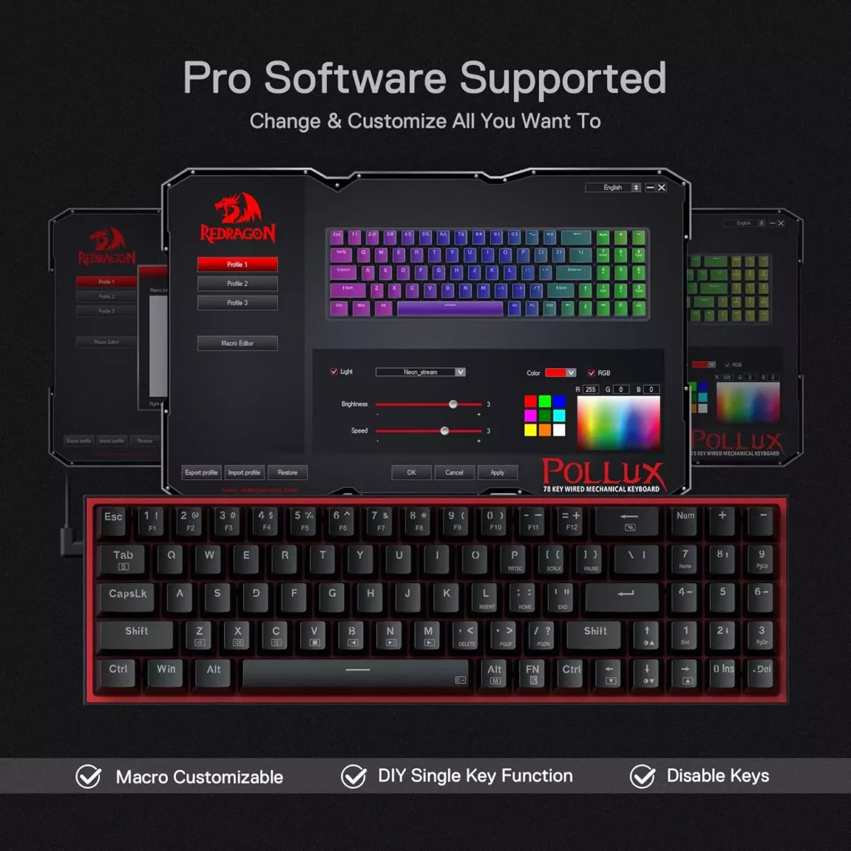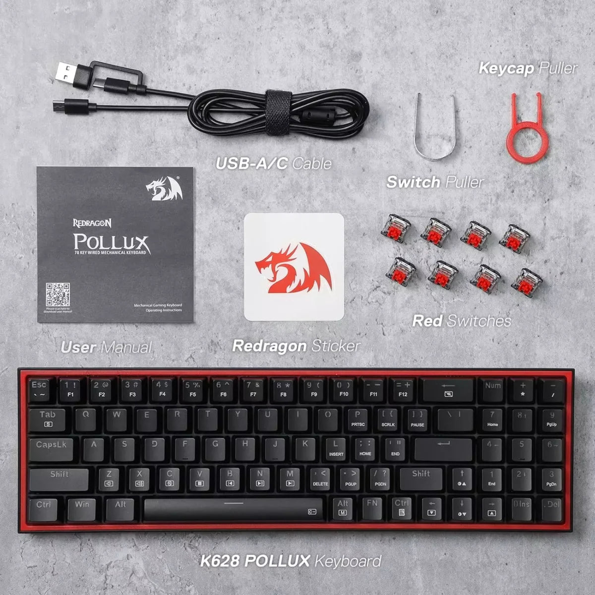 Redragon K628 Pollux 75% Wired RGB Gaming Keyboard Red Switch – عربي/eng
