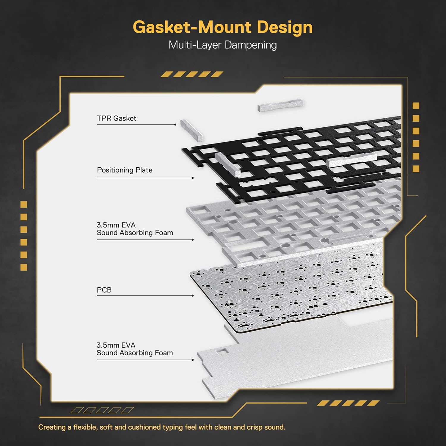 Gasket-mounted design – softer keystrokes with premium feel.