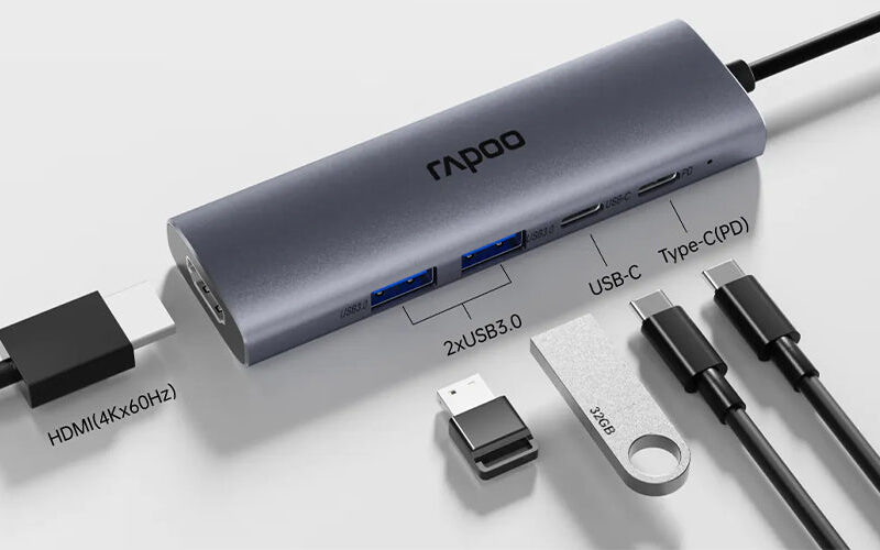 • USB-C HUB RAPOO XD61 - 6-IN-1 MULTI-FUNCTION